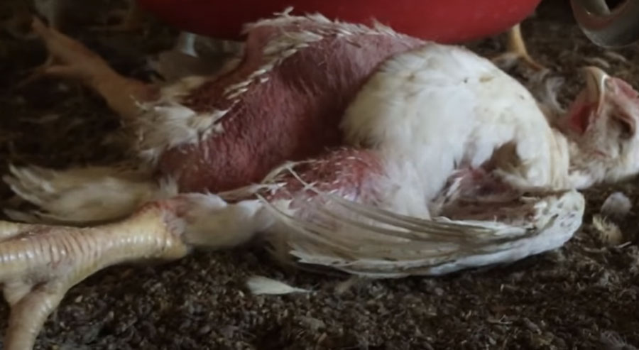 This genetic modification of birds to grow excessively large very quickly has devastating effects on birds’ well-being. For example, some birds have been bred so that they lack the ability to feel sated and thus experience chronic hunger. Although the welfare implications of being chronically hungry are difficult to quantify, other effects are much more evident. By the time they reach slaughter age, broiler chickens are so obese that their legs often cannot support the birds’ own weight, and many die prematurely of heart attacks and congenital myopathies (Chen et al. 2017). These chickens are what Vice has called “true Frankenbirds” (Rose 2017).