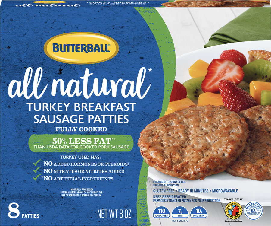 Butterball turkey bears the “all natural” claim and the AHC logo in the lower-right corner