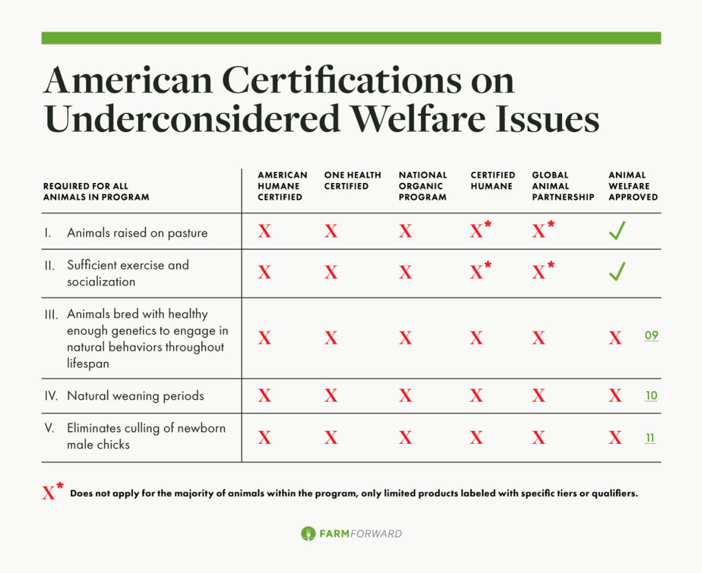 One independent certification, A Greener World’s (AGW’s) Animal Welfare Approved (AWA), stands out as anomalous: it is both the smallest and the most rigorous. It is the only certification that avoids the particularly disturbing humanewashing involved in certifying as humane products from animals raised in intensive confinement, thus avoiding Welfare Issues I and II above. According to AGW, AWA “is the only label that guarantees animals are raised outdoors on pasture or range for their entire lives on an independent farm” (2020a). We concur with this part of their self-assessment.