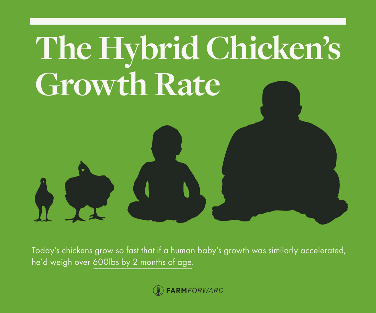 As mentioned previously, AWA still allows hybrid strains of birds but sets a maximum growth rate for chickens of 40 grams per day (A Greener World 2018b), which would bring chickens to the current average slaughter weight of 2.9 kilograms in about 72 days (40 days faster than the fastest strains of heritage chickens). If a human child had their growth accelerated like this, it would be something akin to hitting puberty not at, say, age 12, but 7; it is a profound intervention into the chicken’s genome.