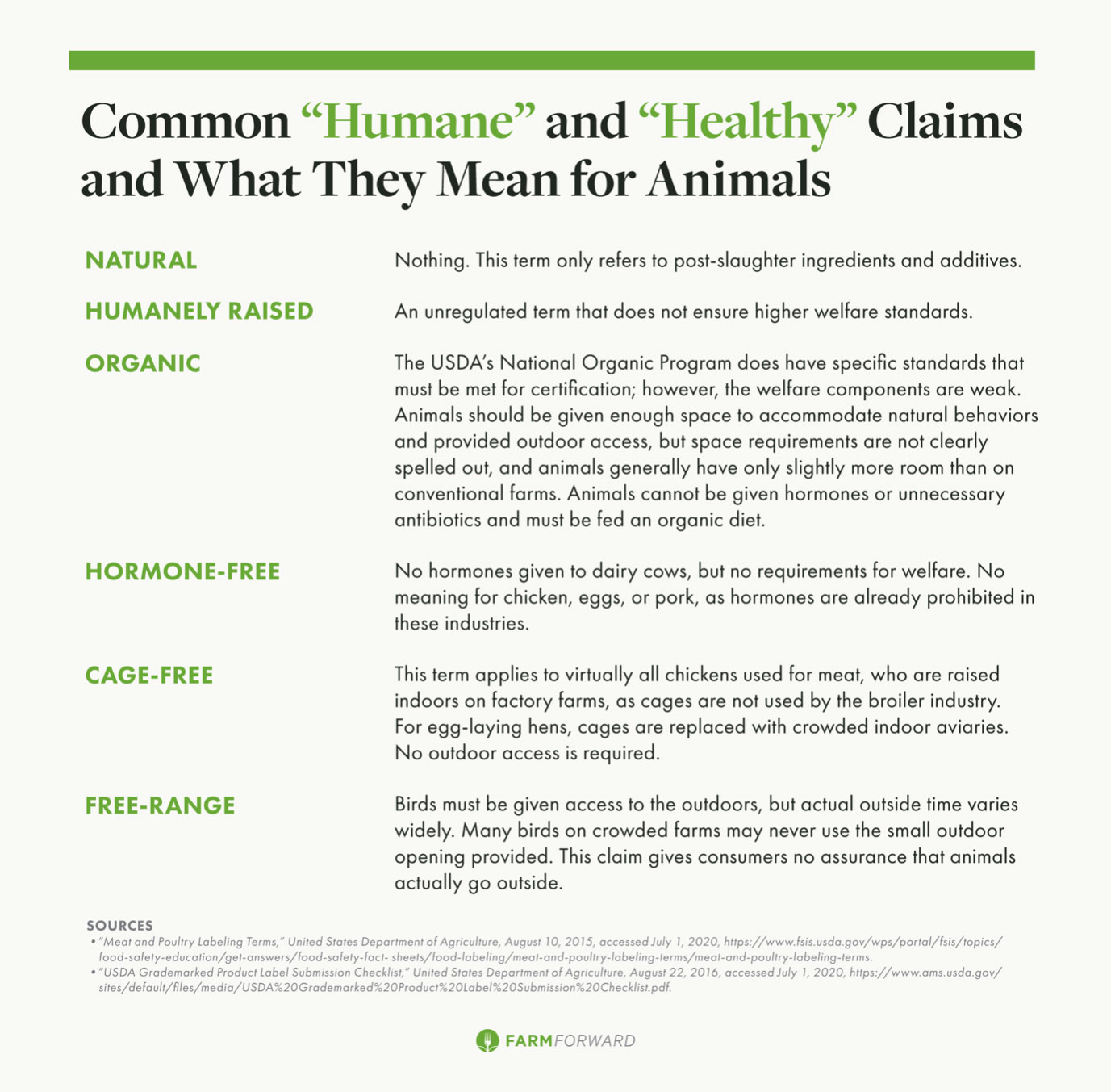 —. 2016. “Meat and Poultry Labeling Terms.” Accessed June 1, 2020. https://www.fsis.usda.gov/wps/portal/fsis/topics/food-safety-education/get-answers/food-safety-fact-sheets/food-labeling/meat-and-poultry-labeling-terms/meat-and-poultry-labeling-terms.